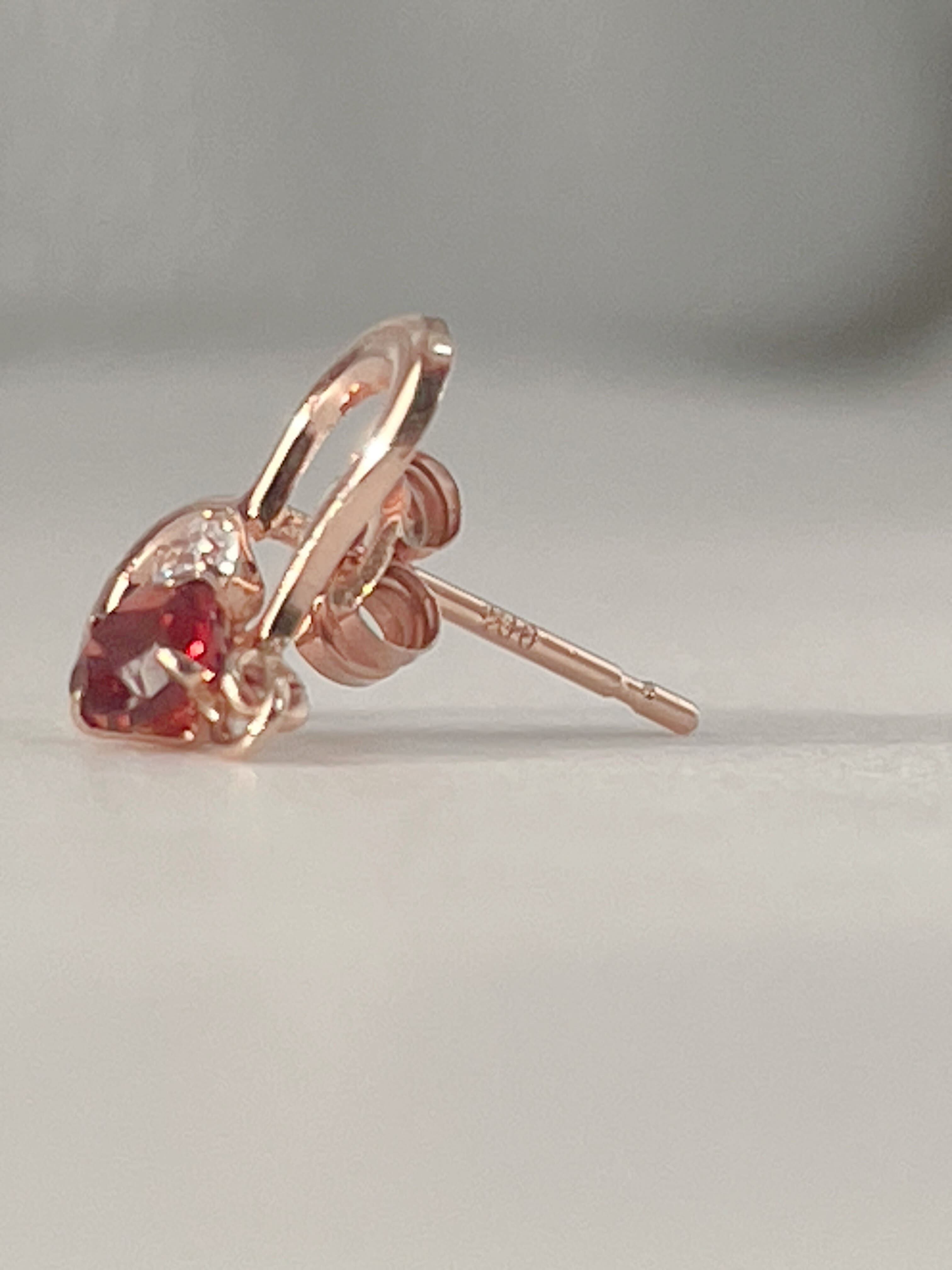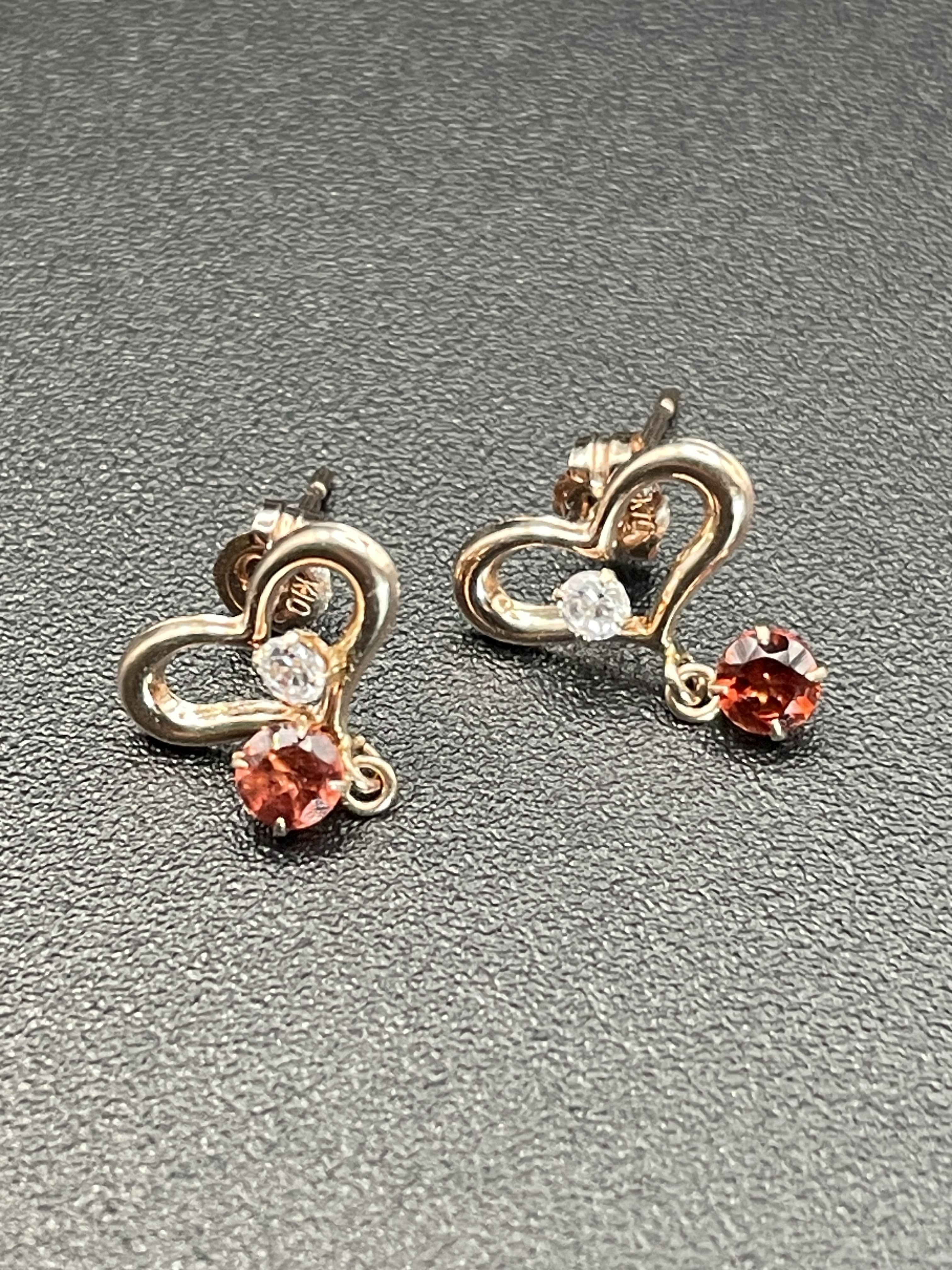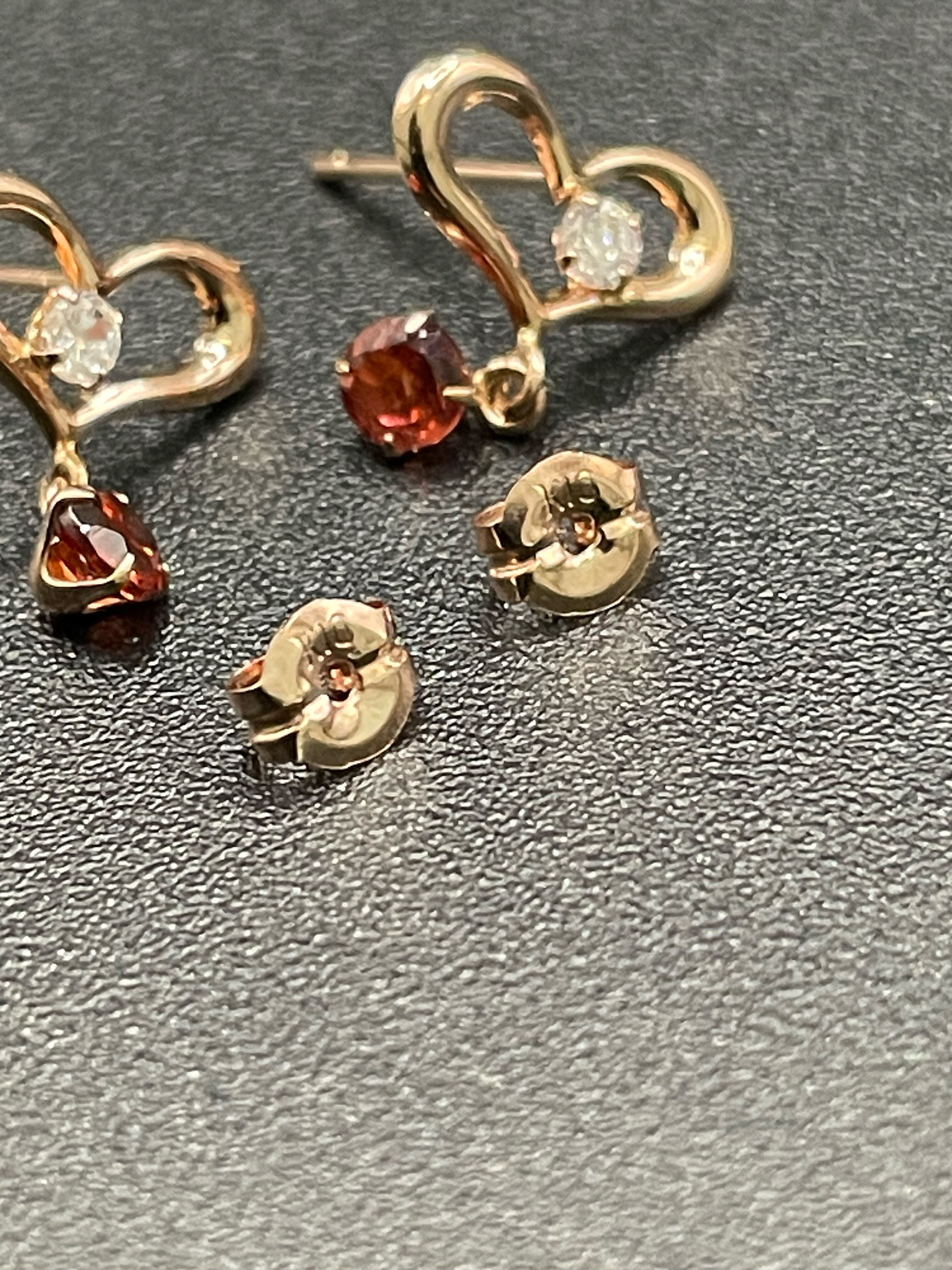 K10 ハートピアス(ガーネット・CZ)|K10 Heart Earrings Garnet & CZ|Hana.senryo-matsu