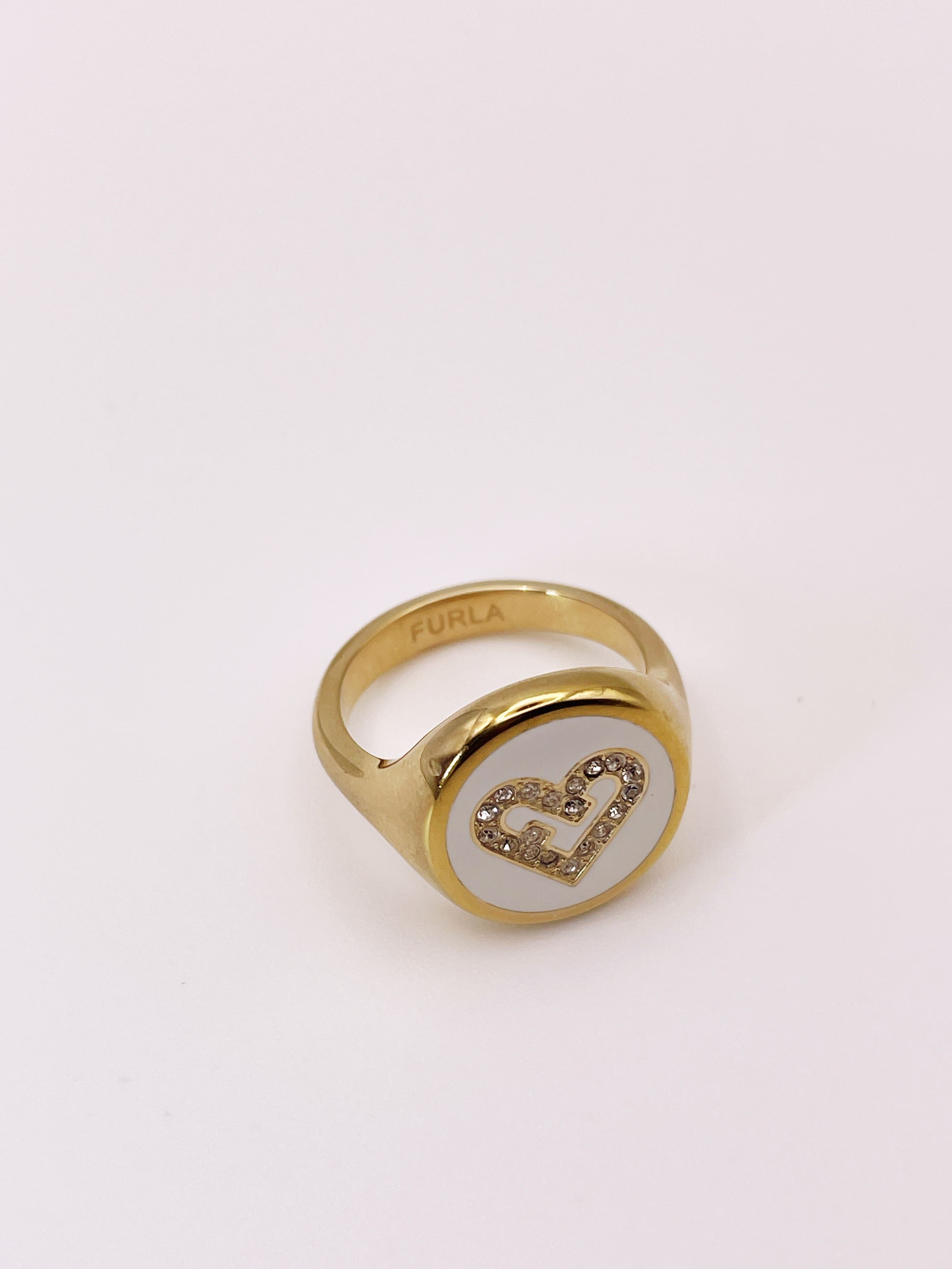 フルラ ハートリング カラー:ゴールド×ホワイト(12号)|FURLA Heart Ring color:Gold×White|Hana.senryo-matsu