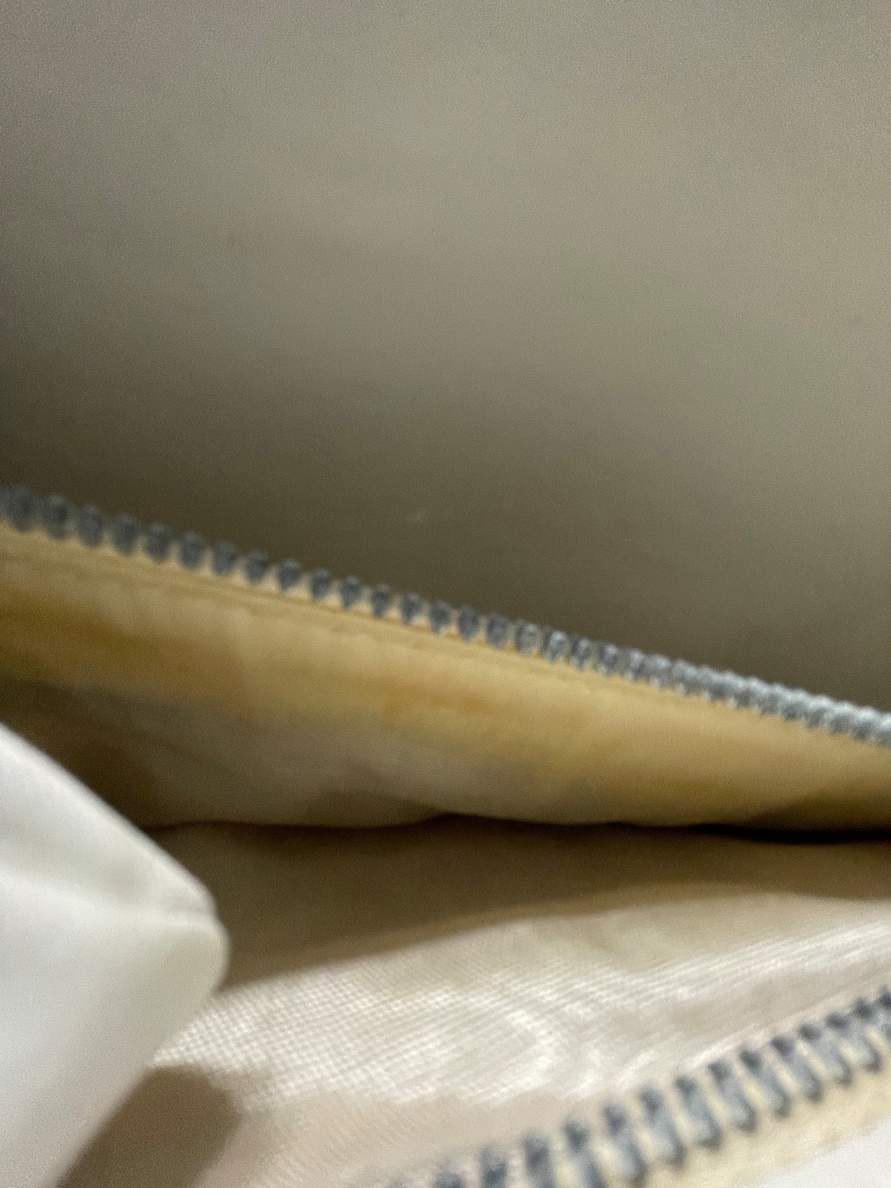 白いレザー特有の経年によるわずかな色あせやくすみがあります。