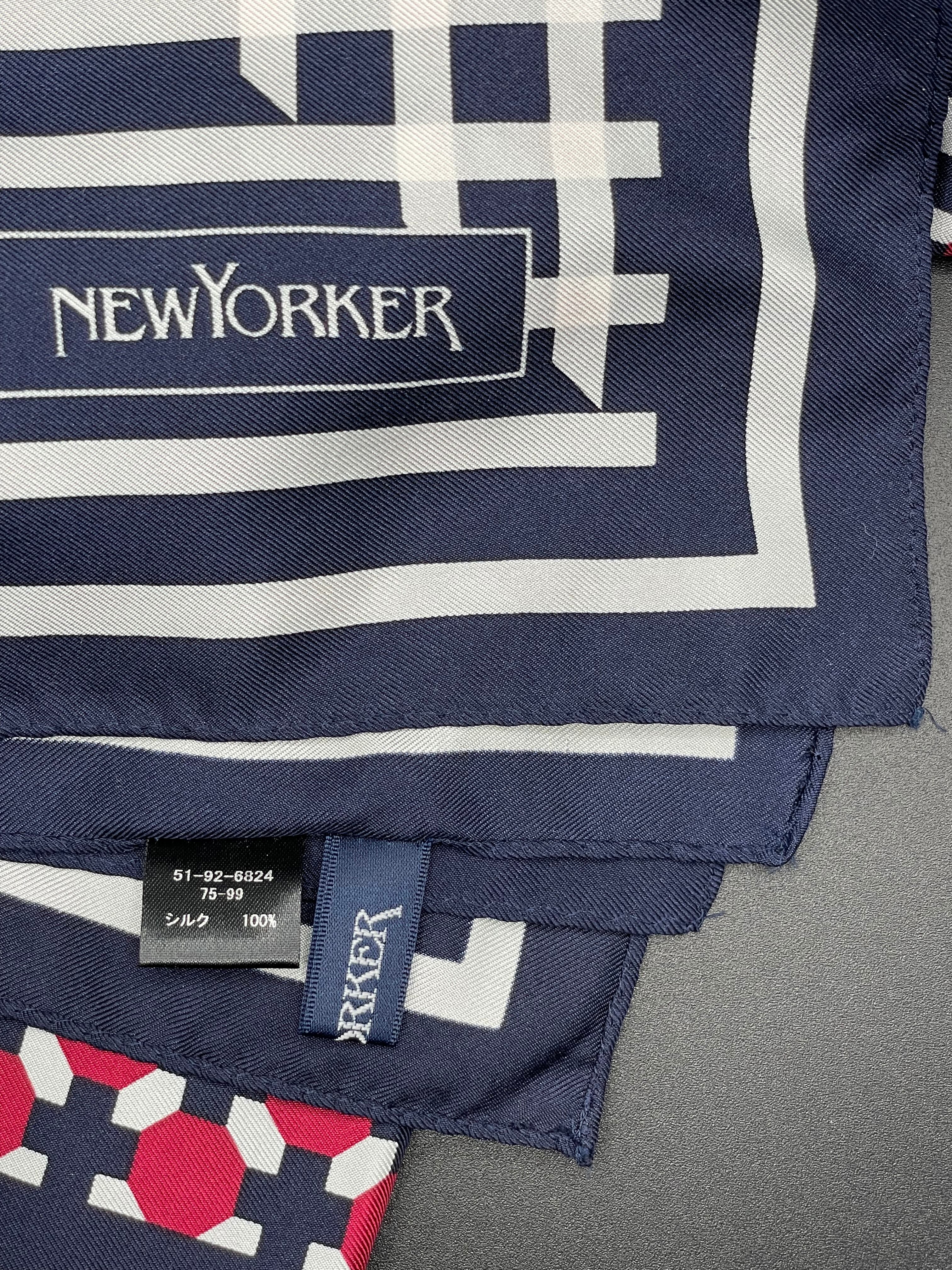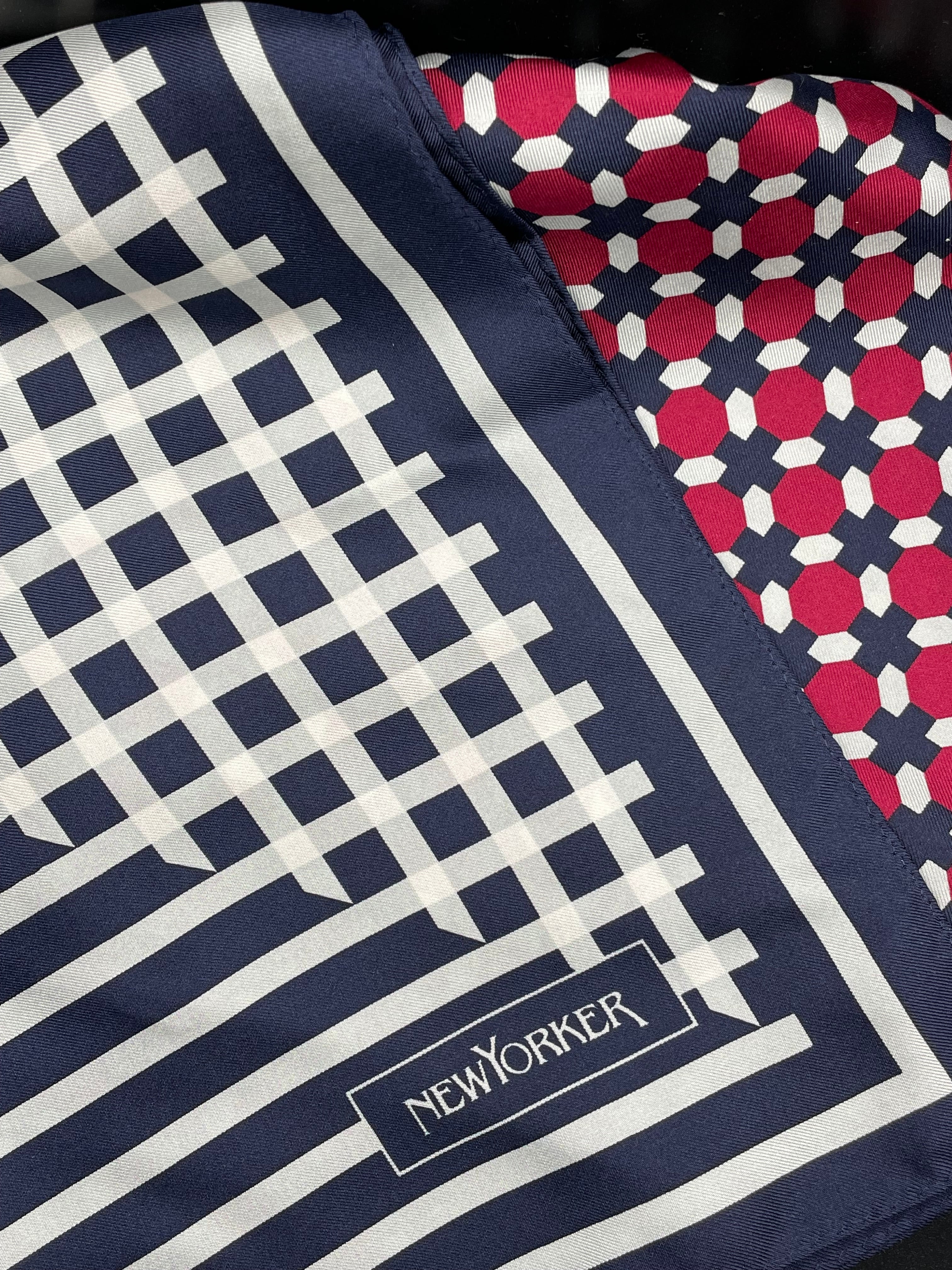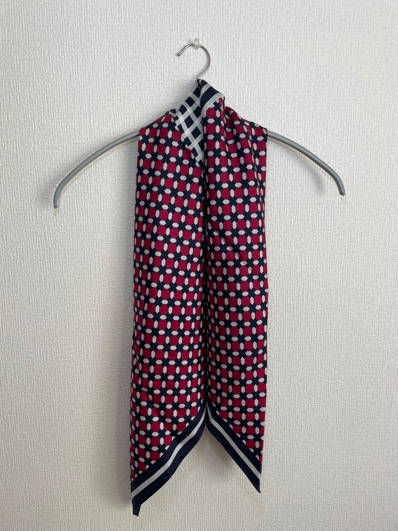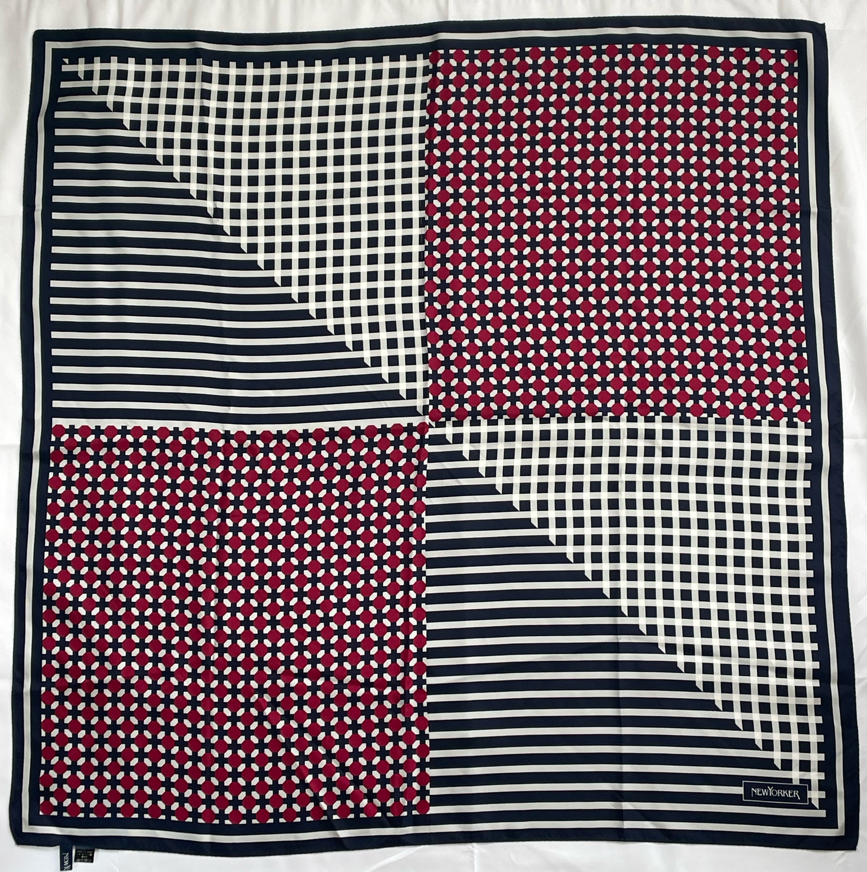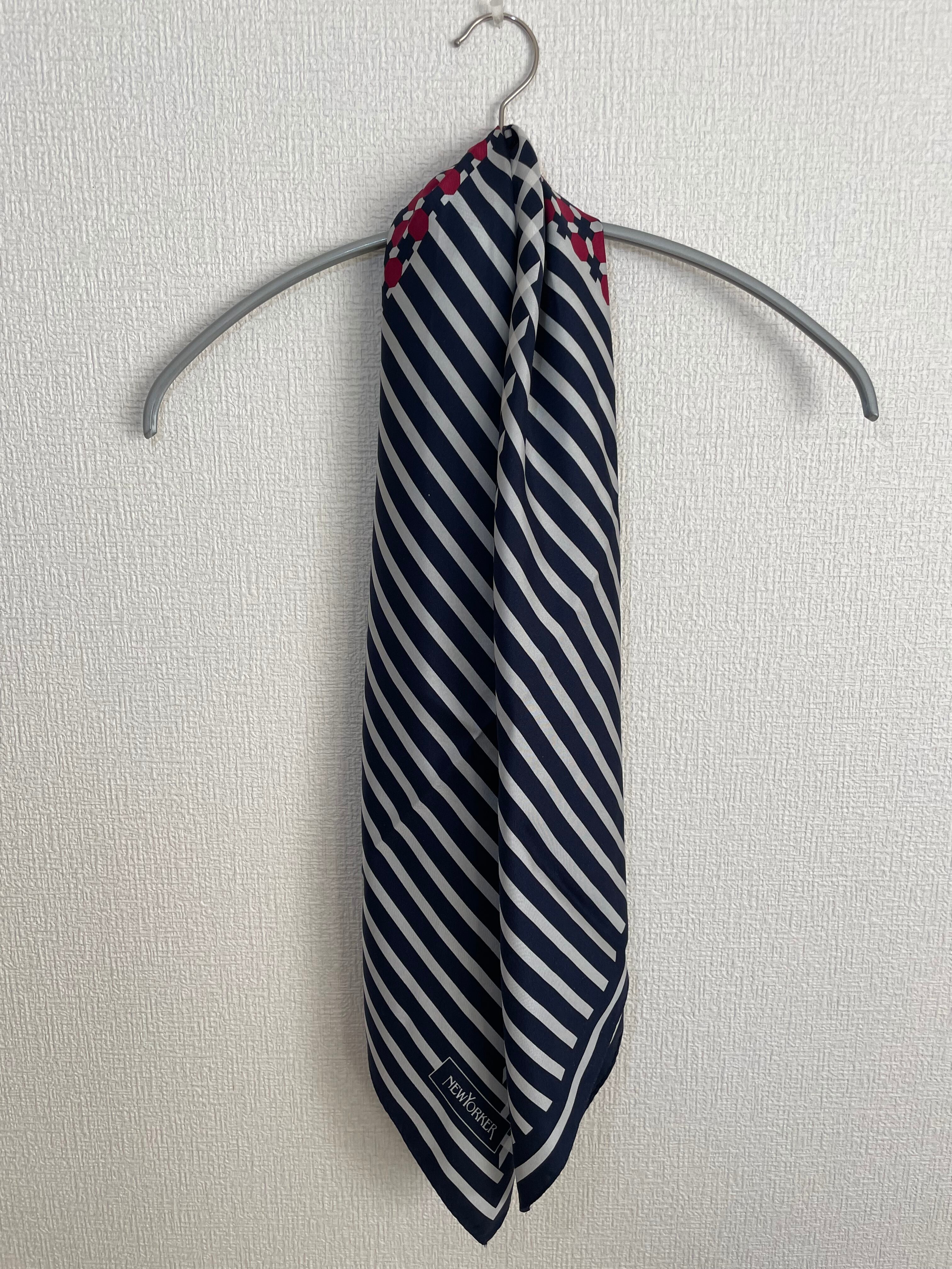 ニューヨーカー 大判シルクスカーフ ネイビー・ホワイト・ボルドー|NEWYORKER Silk Scarf|Hana.senryo-matsu